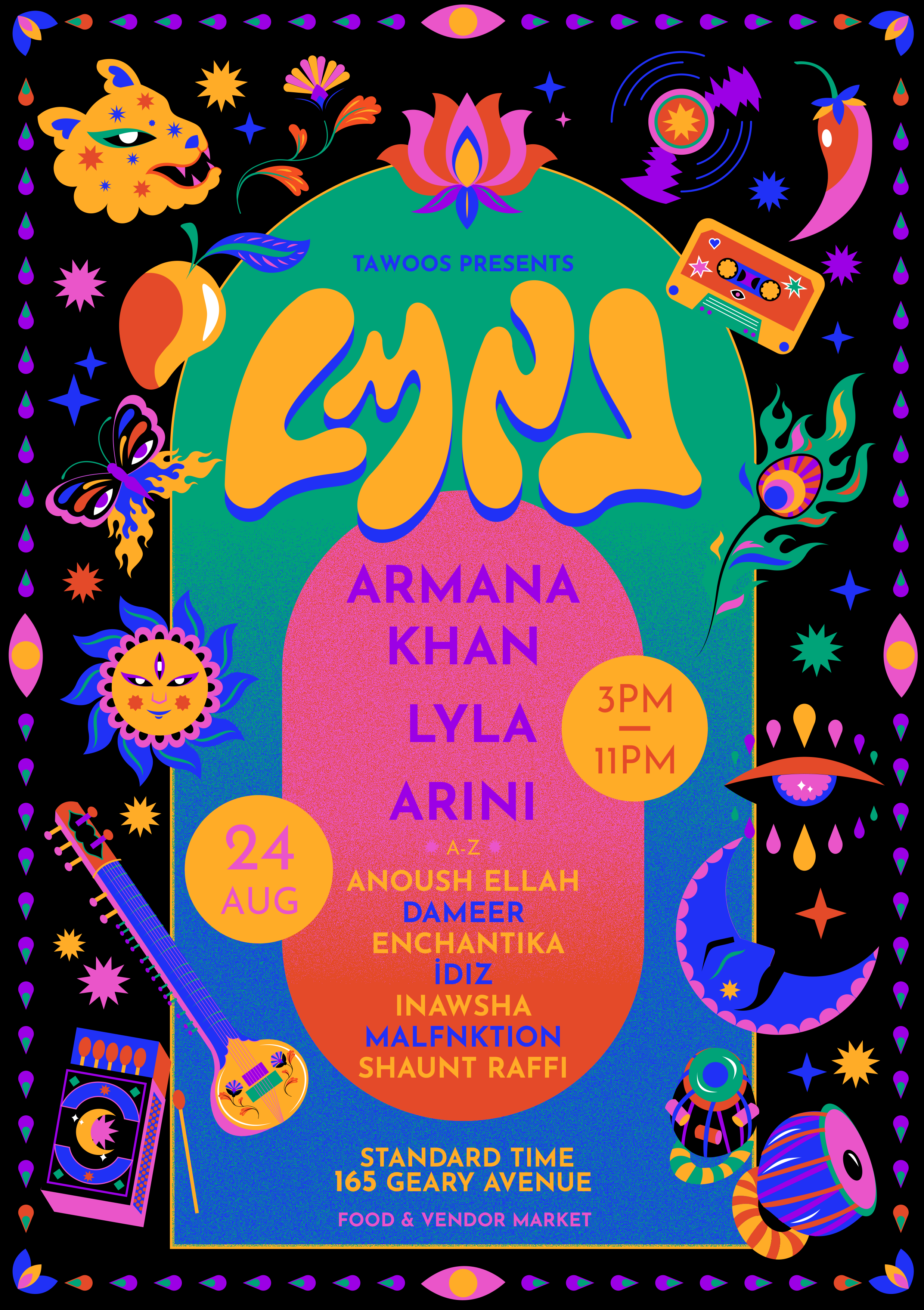 Across the border, The Tawoos Initiative has spent the past seven years creating some of Toronto’s most radical, community-rooted nights. This year, they launched their inaugural festival, LMNL (pronounced “liminal”) — an intentionally queer, femme-centered, fully self-produced rave featuring global talent like Armana Khan, ARINI, and Lyla, supported by Canadian DJs and dance performances by Idiz and Anoush Ellah.
