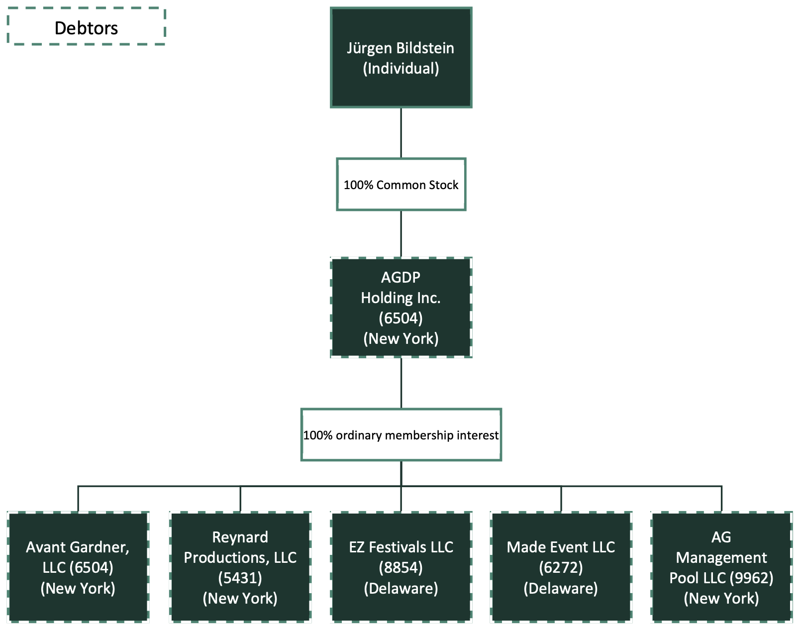 Jürgen "Billy" Bildstein, who co-founded Avant Gardner and owned 100% of the company's stock at Chapter 11 filing, oversaw Brooklyn Mirage's collapse alongside key associates Andrew Axelrod and Gary Richards.