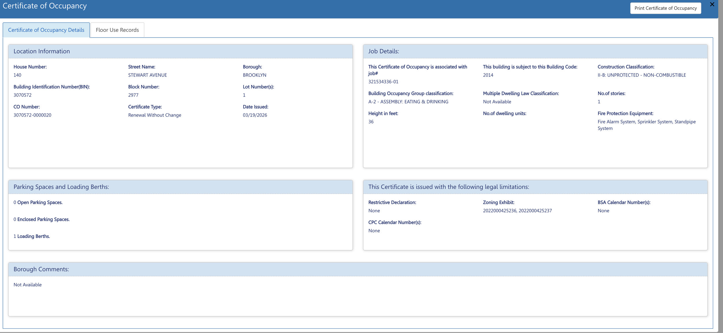 records of 140 stewart ave via DOB-now